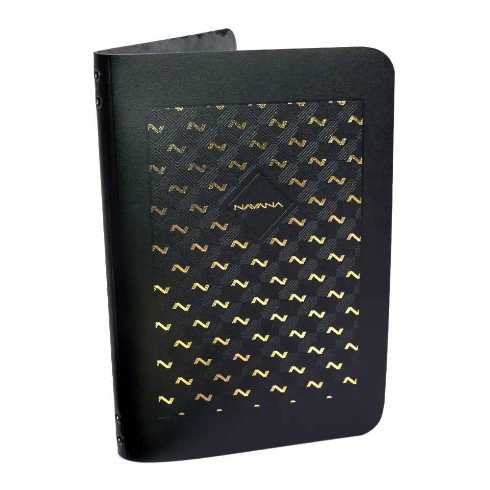 Perfect for intricate artwork designs and pushing the boundaries of what is possible in menu cover design. Labyrinth artwork is created with an ultra-modern blind blocking technique onto beautiful plush materials, using a combination of deboss and foil methods.