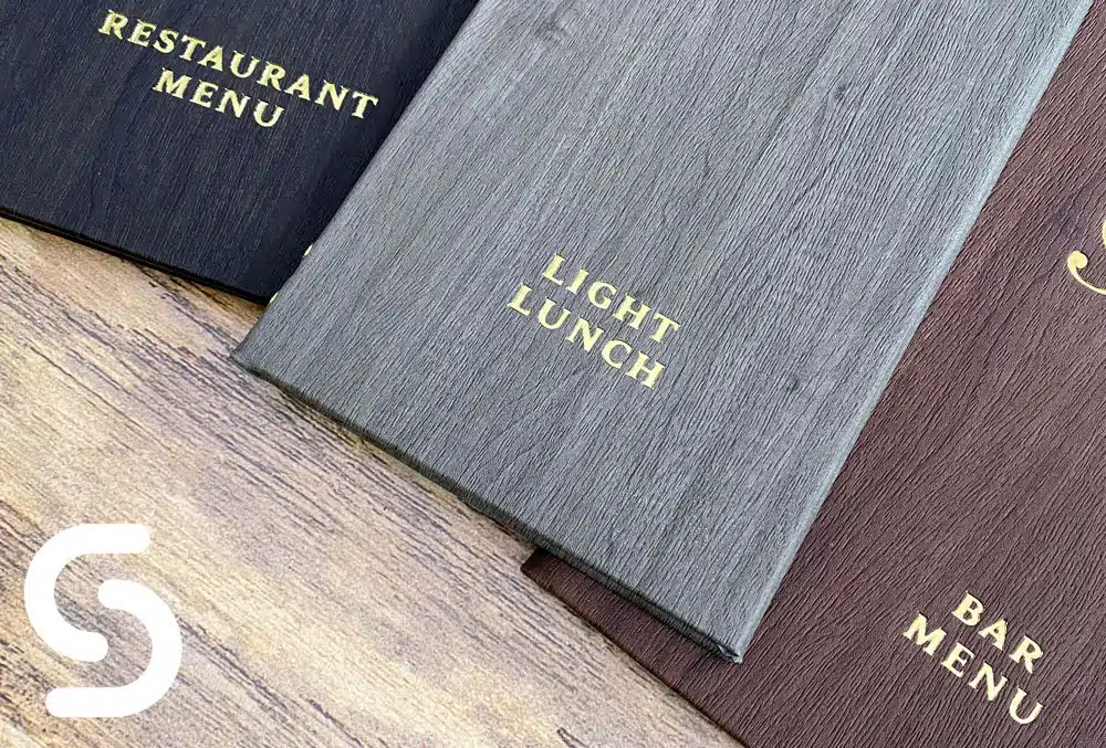 Hot foil can also be applied over the top of your printed menus covers should you wish to add further depth to your design.