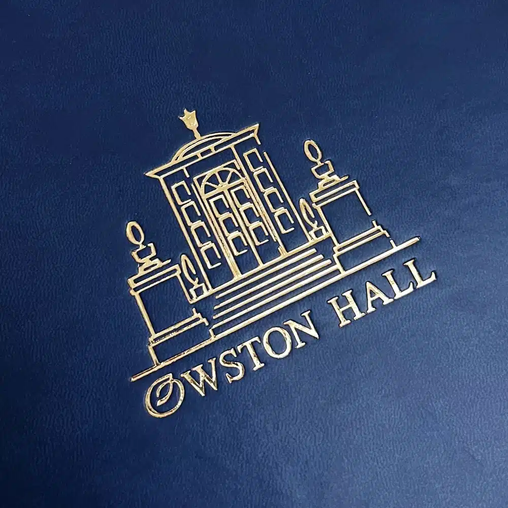 Debossing consists of pressing your logo, image or text into the covering material of your menu. We have a metal plate made to match your artwork and this is then pressed into the fabric that your menu is wrapped in to produce the textured design. Materials react differently to this process, Vivella and Leather materials are specifically effective at taking this method.