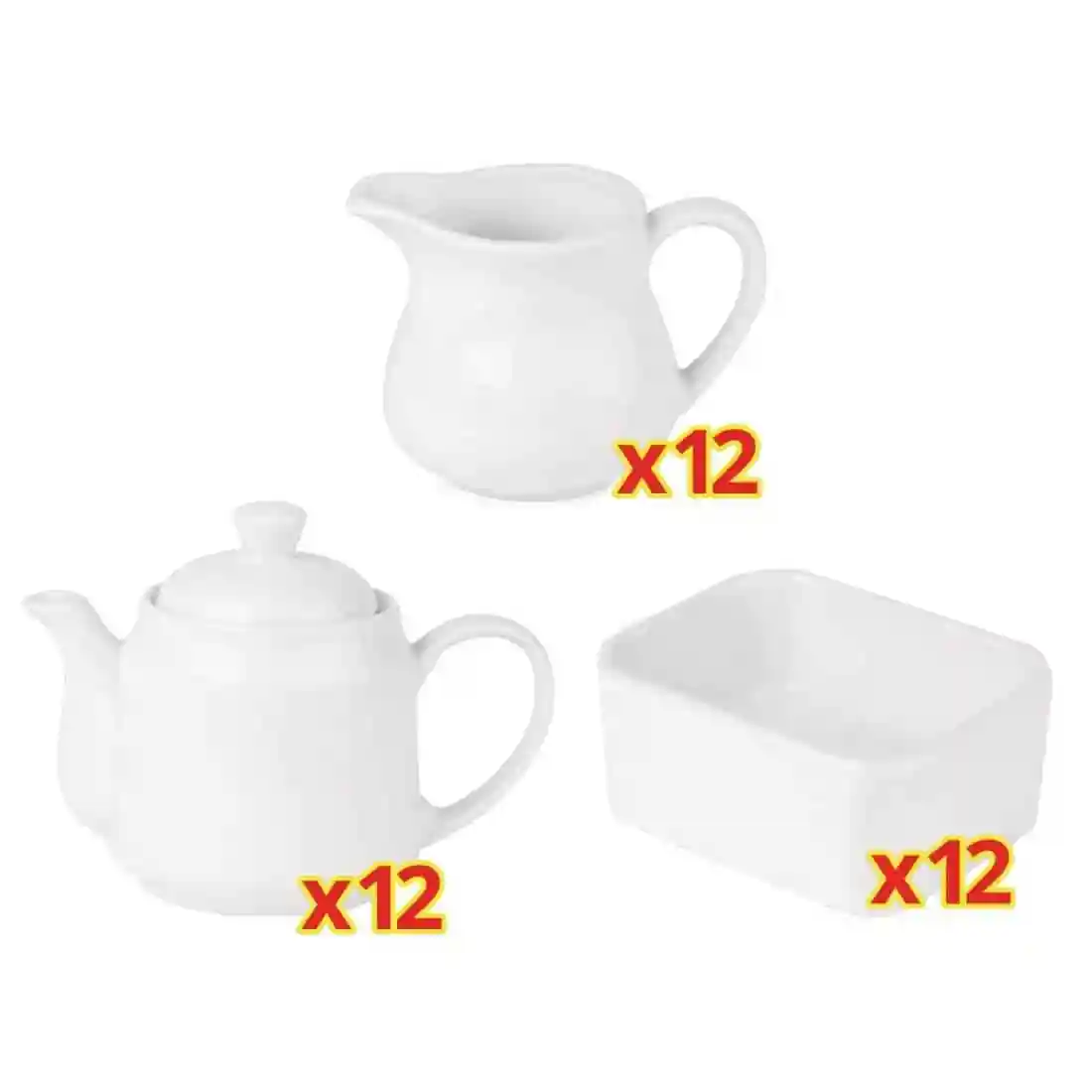 12 x 430ml beverage pots, 12 x 170ml milk jugs, 12 x sachet holders