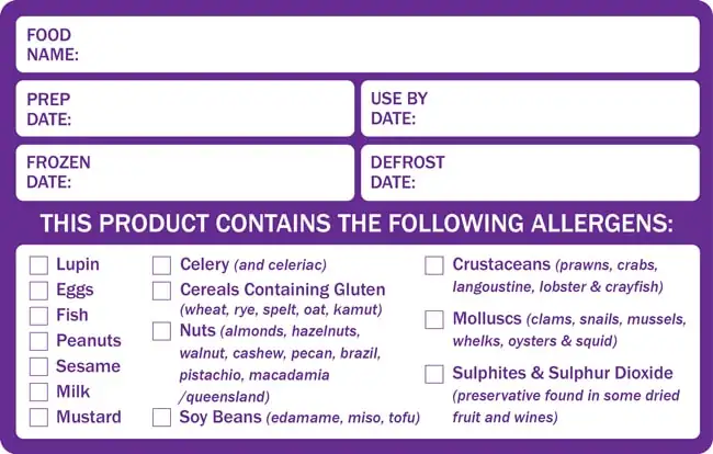 Preparation and Allergen Food Labels - Back of House