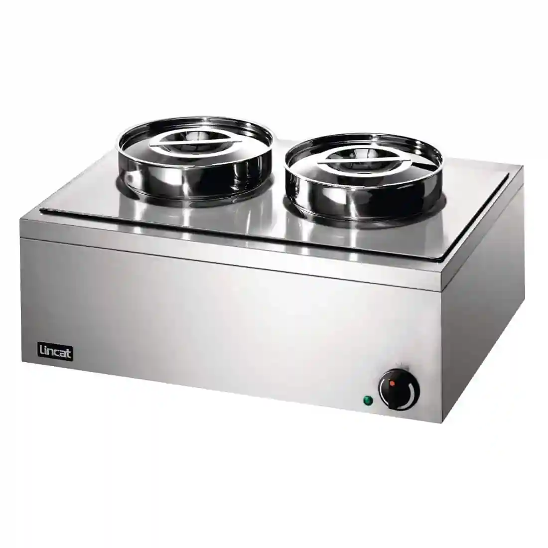 Bain marie with two pots offers you convenient hot holding of soups, vegetables and sauces.