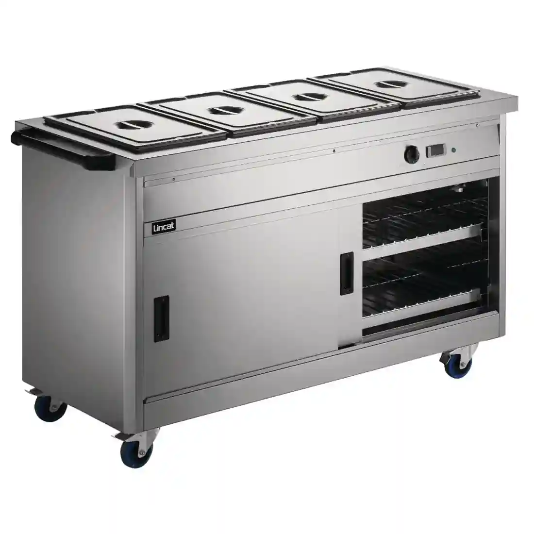 At only 672mm deep, this quality Lincat Panther 670 Series hot cupboard with four plate compartments is specifically designed to fit through narrow corridors and doorways. Along with their extremely useful bain marie tops, this makes them ideal for small restaurants, cafes and pubs, as well as nursing and care homes, where the easy transportation of plated meals to diners and residents is a necessity.