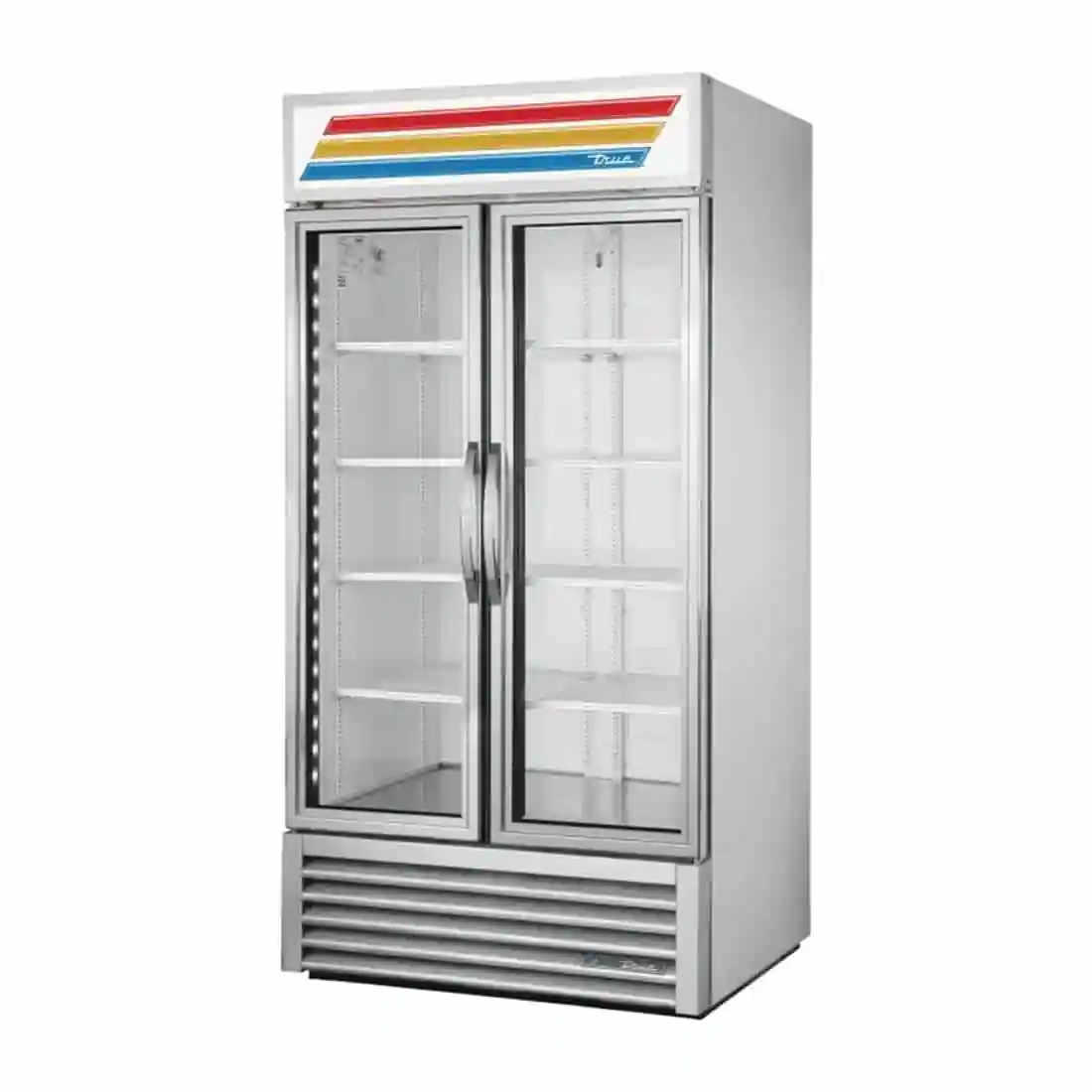 - Refrigeration system maintains cabinet temperatures 0.5°C to 3.3°C, ideal for packaged food merchandising and rapid cooling of beverages.