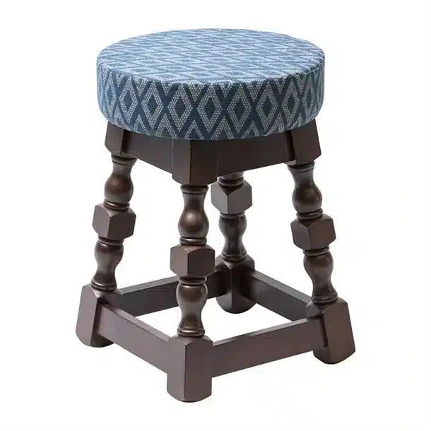 Classic Rubber Wood Low Bar Stool with Blue Diamond Seat (Pack of 2)