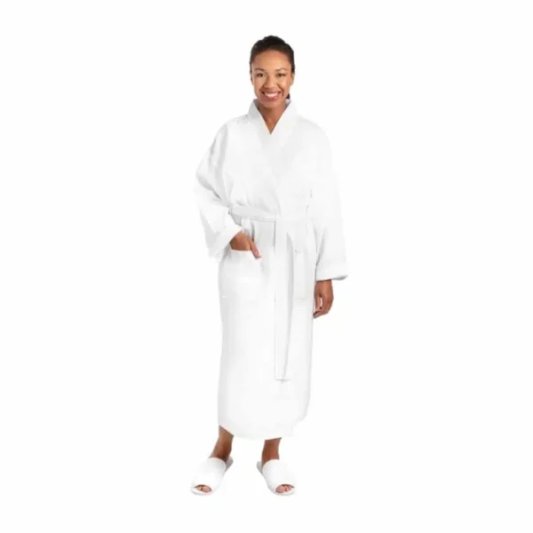 Give your guests the full spa treatment, with our kimono style bathrobe from Mitre’s Essentials range. With its signature honeycomb pattern, this large bathrobe is both soft and warming, whilst boasting a spa-inspired look. This makes it ideal for use in hotels, B&Bs and spas where the robe is sure enhance your guests’ overall experience.