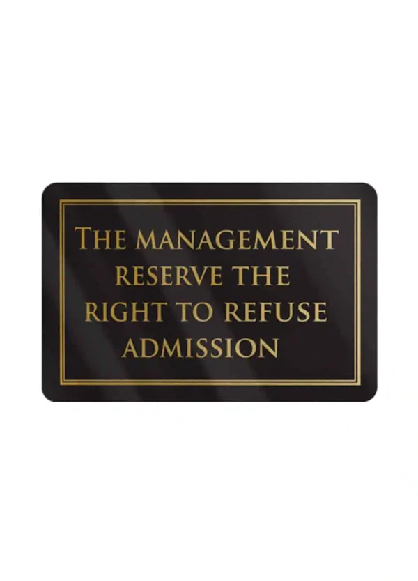 This bar sign explains that the management reserve the right to refuse admission if they feel the need to. This black club sign is a perfect solution for keeping your venue secure and in keeping up with UK licensing laws for your venue.
