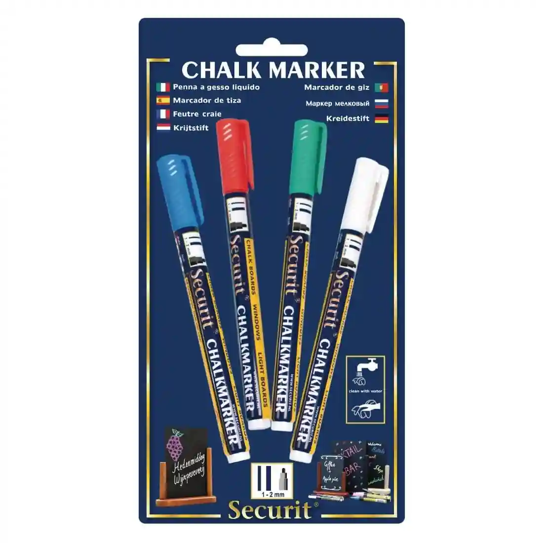 Home / Shop / Menu Covers & Holders / Blackboards & Chalkboard Menu Signs / Set of 4 Securit 2mm Liquid Chalk Pens Assorted Colours