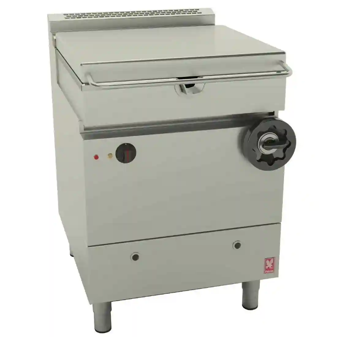 A heavy-duty, thermostatically controlled bratt pan from Falcon, with six different cooking options: griddle, shallow fry, deep fry, boil, simmer and stew. The cast iron pan offers excellent heat distribution delivering greater consistency in cooked food, and the pan is tilted by means of a manual, easy-to-turn handle, making it easy to operate. The safety of those using the bratt pan is paramount, therefore power is cut-off if the pan is moved from the fully lowered position, or is lifted at any time. The precise temperature control allows accurate and sensitive operation, and stainless steel exterior and one-piece lid allows makes the machine easy to clean.
