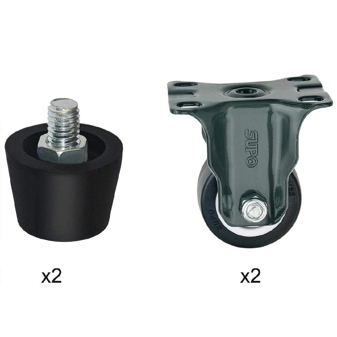 Replacement set of 4 complete feet and standard castors for Buffalo undercounter UVC steriliser cabinet.