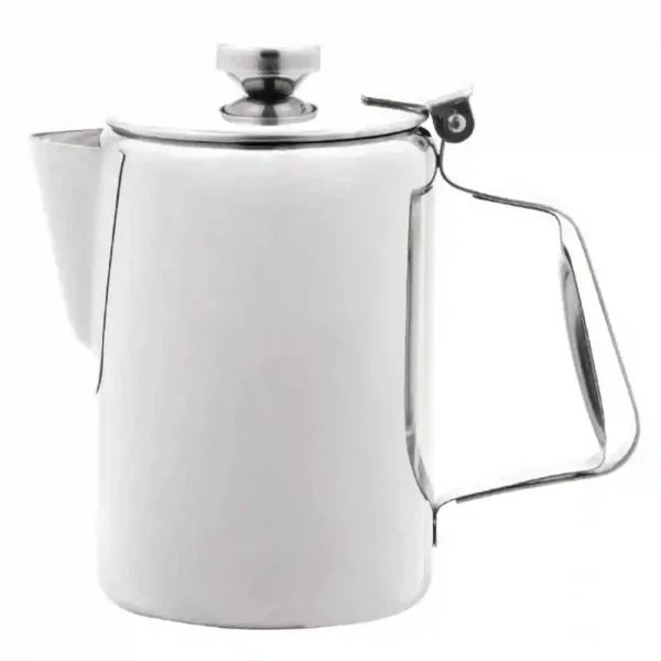 Simple range of hot beverage service items in highly polished stainless steel. Pots feature heat resistant handles.