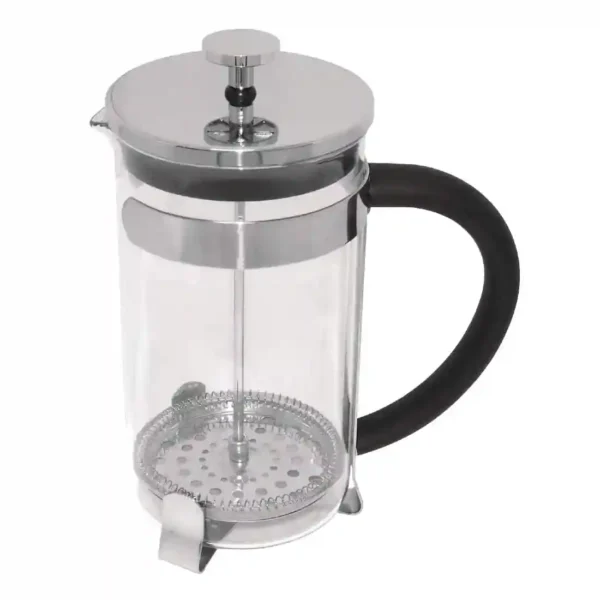 Contemporary designed cafetiere in stainless steel and strong glass.