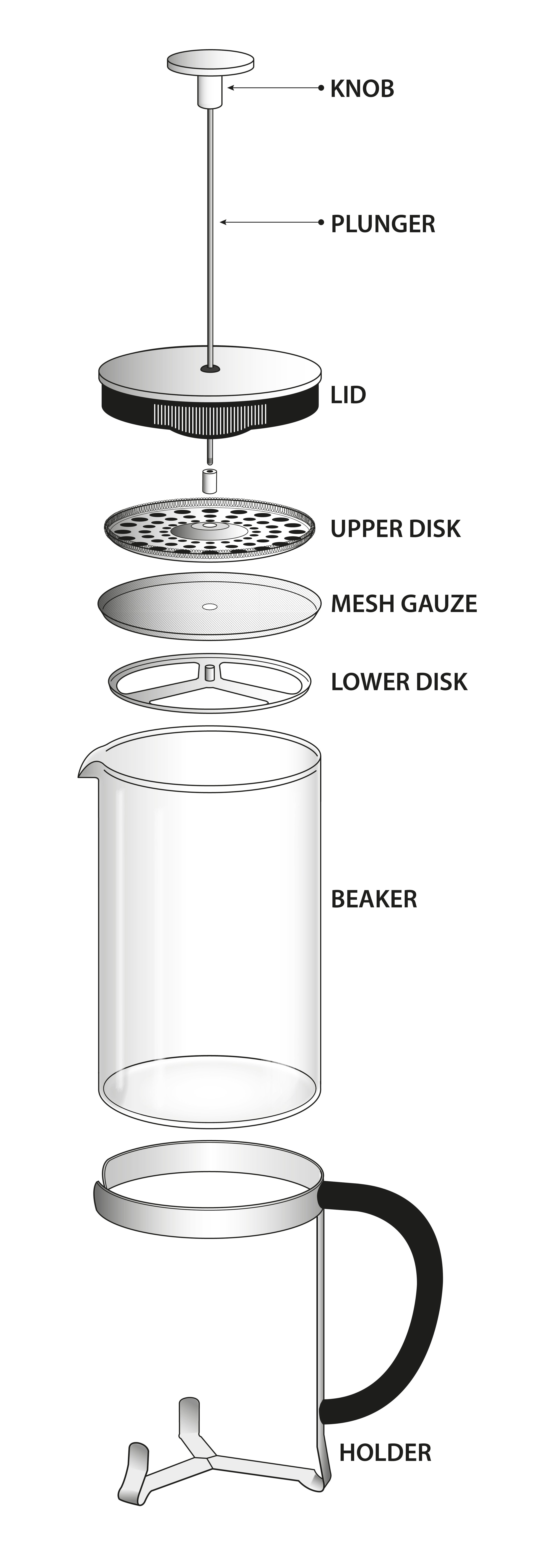 Contemporary designed cafetiere in stainless steel and strong glass.