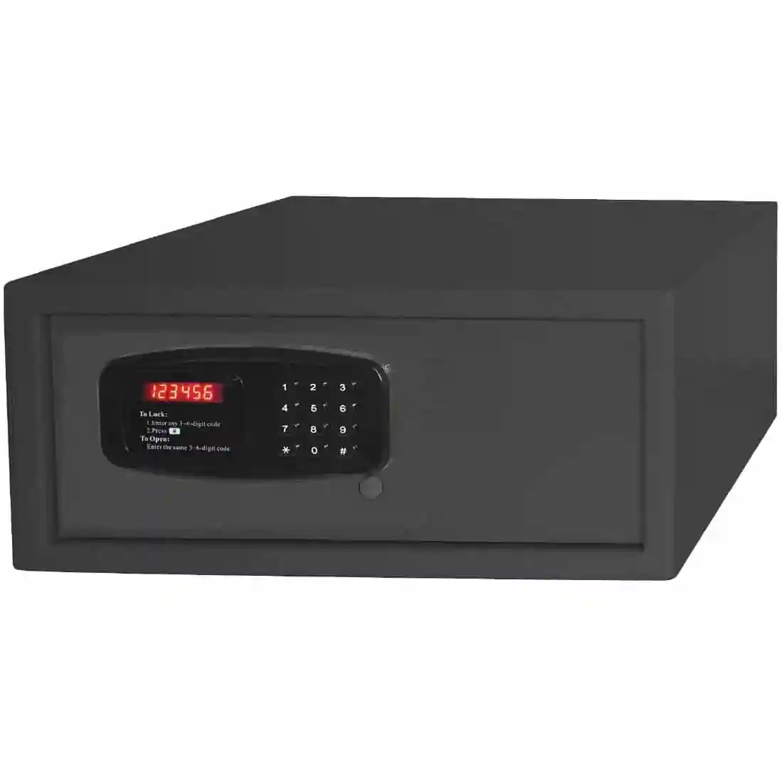 Designed to accommodate even wide screen laptops to give guests peace of mind. Easy to use with clear LCD display and step-by-step instructions for fitted electronic lock. Can be bolted to wall or floor (fixings not supplied). Requires 4 x A4 batteries (supplied).