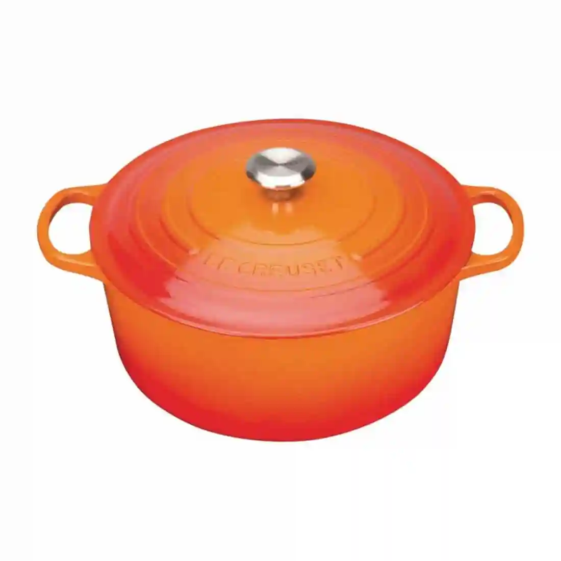 The essential kitchen classic. From a fifteen minute pasta ragu to a slow-cooked, fragrant stew; from tender, juicy roasts to freshly baked bread and cakes that rise to perfection and bake evenly, this round cast iron casserole dish is ideal for a wide array of one-pot recipes. New features include: easy-grip, 45% larger handles; easy clean, toughened enamel interior; a stylish, heat resistant stainless steel knob; and an enhanced tight-fitting lid.