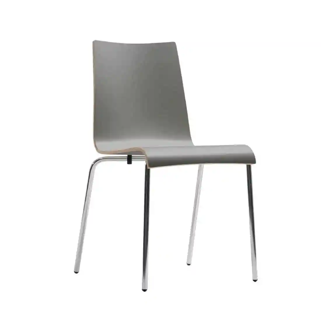Stacking sidechair in Beech laminate with chrome legs suitable for canteens, restaurants and cafes