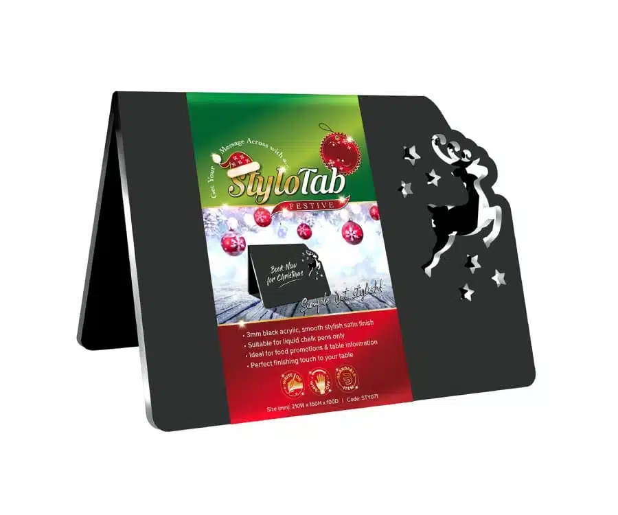 Our Festive Stylotab range is the Perfect freestanding tabletop promotional product for any Hotel, Cafe, Bar or Restaurant establishment for promoting any Events, Special offers or Deals this Christmas.