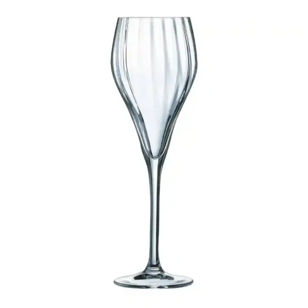 As part of Chef & Sommelier’s Symétrie collection of light-capturing stemware, these 160ml champagne flutes add a unique and sophisticated touch to any venue. Created for restaurateurs, mixologists and hoteliers alike, these slender champagne flutes can be used to serve your guest-favourite drinks in style. The hypnotic internal optic delicately plays with light whilst enhancing the look of each drink the glasses hold. Made from Krysta, it is designed for long-lasting use in professional environments without becoming ruined by stains, chips or scratches.