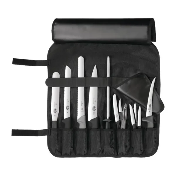 Effectively protect your precious knives with the professional knife roll bag from Victorinox. The roll bag features a total of eight individual sections that can hold a variety of knives, steels and small utensils. Three of the holding sections feature an ergonomic cover that provides protection from knives impacting each other.