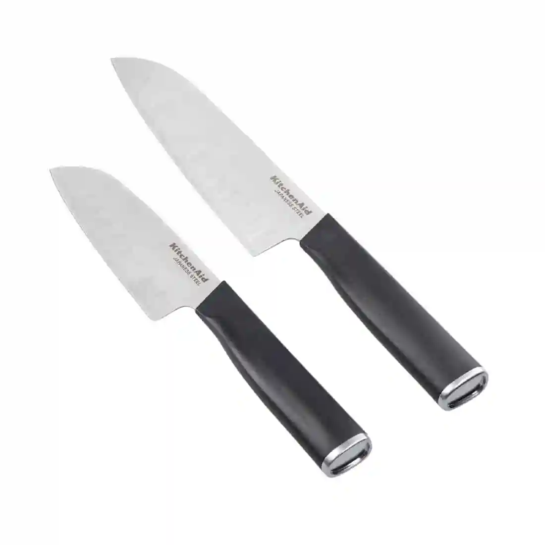 The KitchenAid Classic 2 piece santoku knife set is a must have for everyday meal prep. The ridges on the blades are specially designed to prevent foods from sticking while you slice, making them ideal for chopping and dicing vegetables.