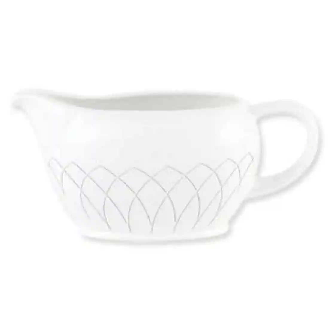 A fine china sauce boat from the Jardin collection by Churchill, which embodies a timeless appeal, enhanced by classic design. The delicate embossed border reflects the elegant arches of windows and brings a sophisticated ambience to the dining experience. The sauce boat is ideal for all types of professional catering environments as the high alumina content of the china gives it maximum strength. Coupled with a superior glaze which is resistant to the erosion caused by dishwashing and damage caused by cutlery and a chip resistant rolled edge, Jardin crockery can withstand the rigours of daily use and will stand the test of time.