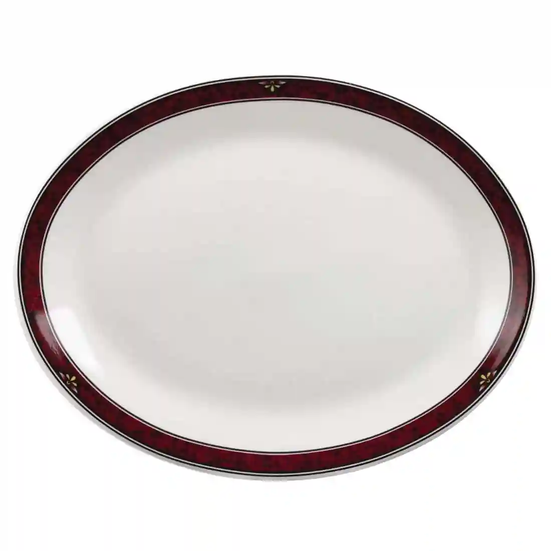 Designed for the true connoisseur these Milan range oval shaped platters by Churchill are patterned with a deep marbled border, inset with jewelled motif and edged with a fine line, available on a number of different whiteware pieces.