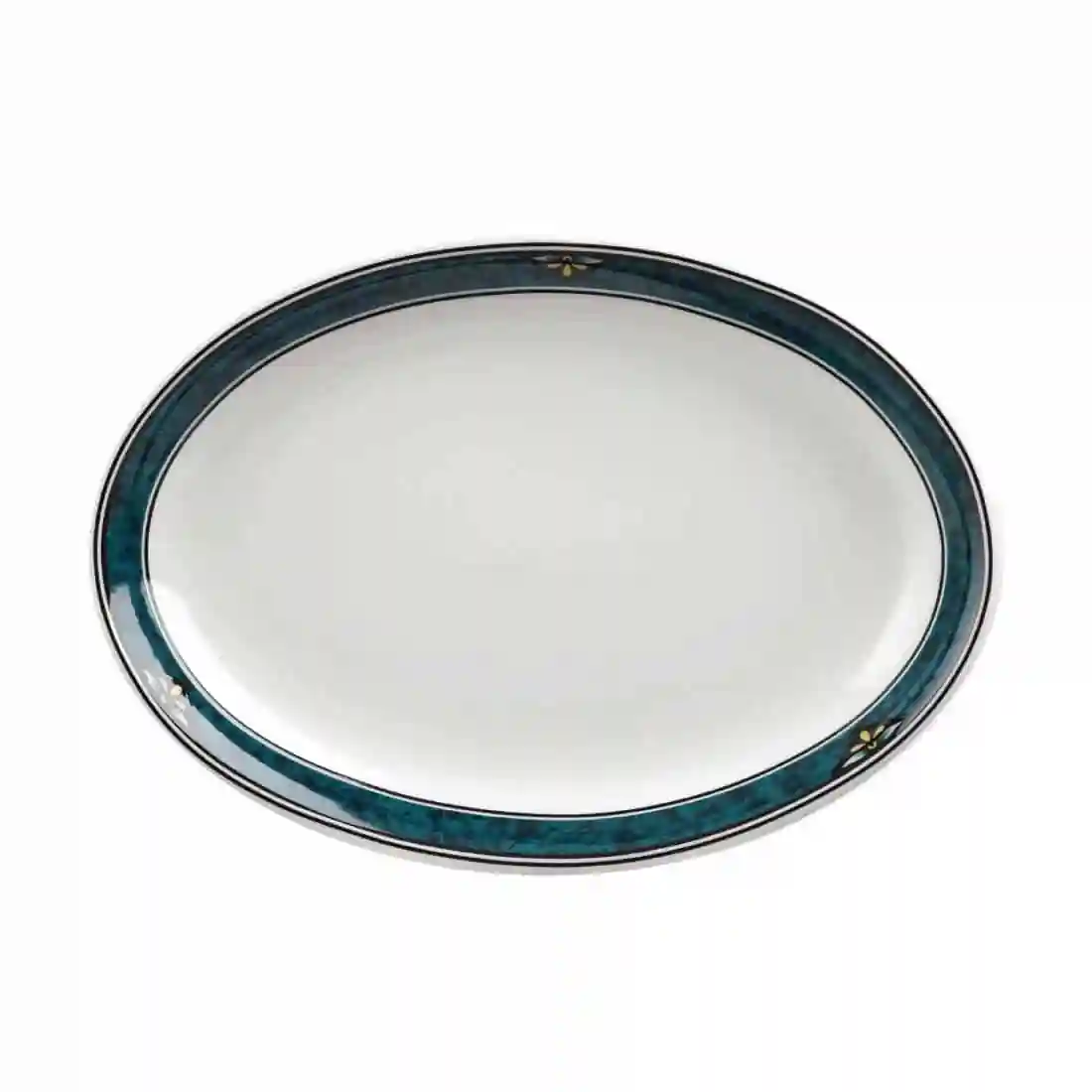 Add an air of opulence to every dining occasion with Churchill’s range of Verona crockery, available on a number of different whiteware pieces. Finely designed with a deep green marbled border and jewelled motif, these classical elegant oval shaped platters are durable with a fully glazed foot and edge.