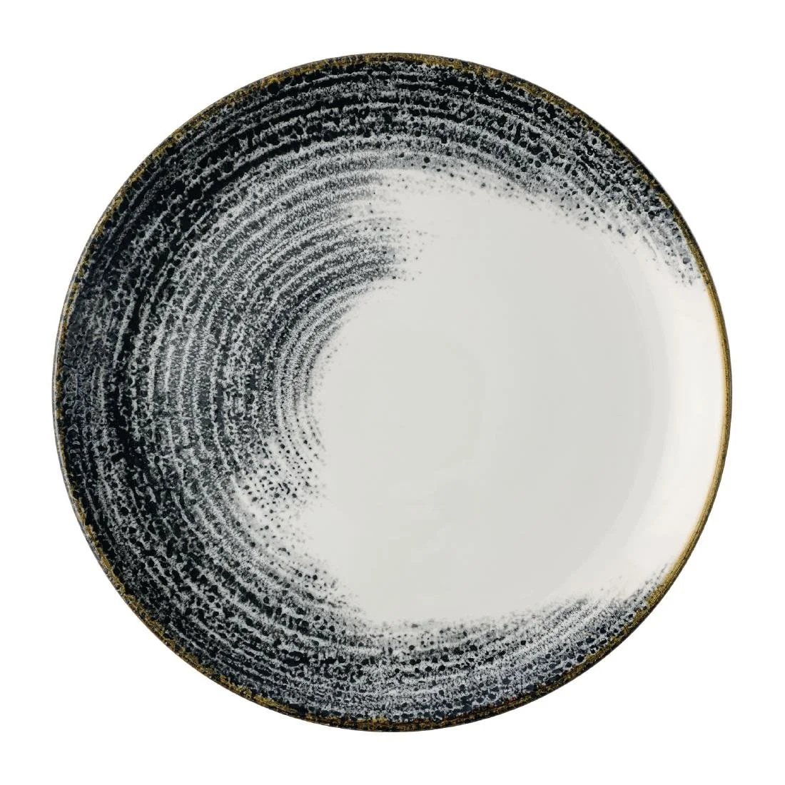 Enhance your food presentation with these black coupe plates from Churchill’s Studio Prints Homespun Accents collection. Designed to evoke the charm of hand-thrown pottery, these plates feature a captivating concentric pattern with a carefully applied edge band.