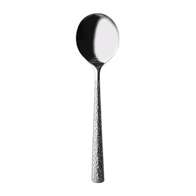 Inspired by Churchill’s popular Stonecast crockery, these soup spoons reinterpret the collection’s signature spinwash pattern as a tactile, handcrafted embossment. The angular shape and textured finish reflect the same artisanal aesthetic seen in the ceramics, making them an ideal partner for premium hospitality settings.