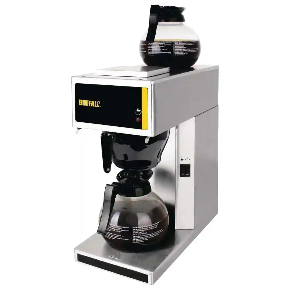 Make great coffee for your customers with the Buffalo Commercial Filter Coffee Machine. Supplied with a dishwasher safe 1.8 litre glass jug, the independently controlled upper hotplate allows coffee to be kept warm whilst another jug dispenses for a constant supply – ideal for busy restaurants, halls, bars and bistros. Powerful and fast, this quality coffee maker can quietly dispense a 1.8 litre jug of coffee within five minutes, keeping queues down and maximising output. Additional jugs are available separately. Simple to use and clean.