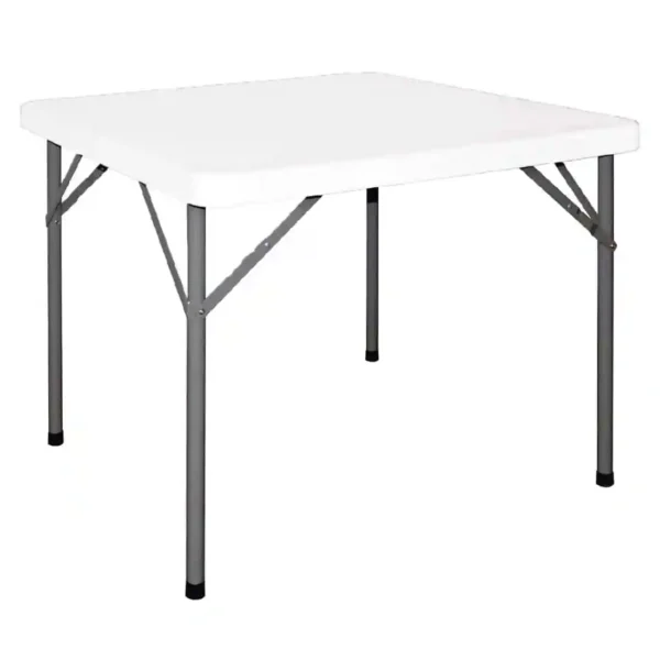 Tough easy care high density polyethylene foldaway square table.