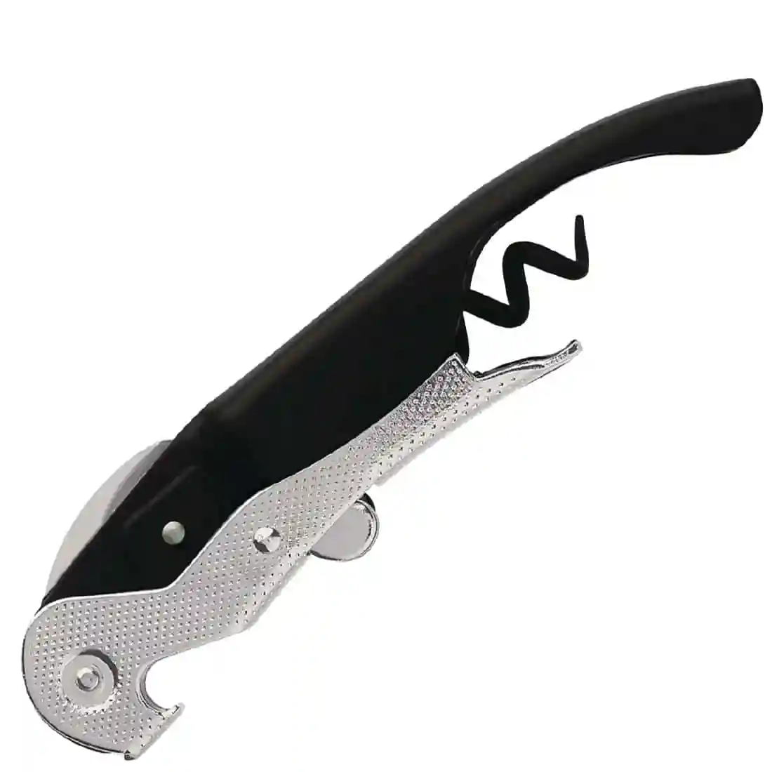 Double lever corkscrew which is extremely efficient at extracting even the toughest corks. Constructed from metal with a teflon coated worm. Hard wearing serrated blade.