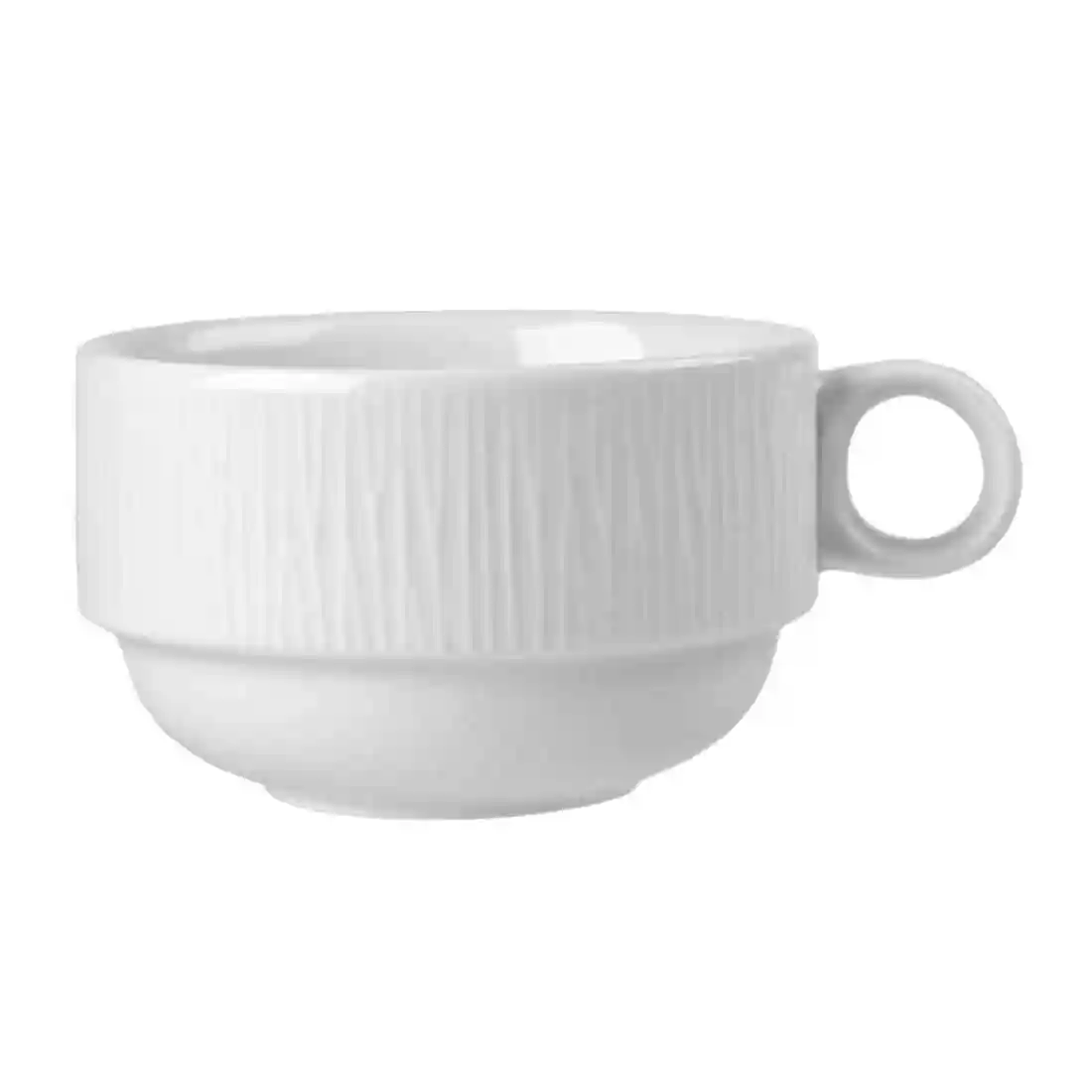 Save space and remain stylish with these stackable Bamboo cups from Churchill. The elegant design that surrounds the cup was inspired by the natural flowing form of wild bamboo and brings a calming element to the drinking experience. The cups are finished with a specially developed glaze that resists marks which could be created by stacking.