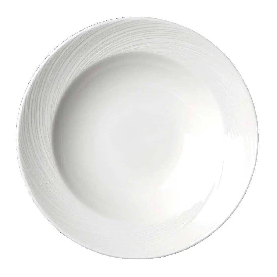 Combining contemporary forms with traditional finishing techniques, this award-winning Spyro crockery has been individually styled with a delicate, swirling embossed detail which lends a touch of sophistication to any professional catering environment, from banqueting to fine dining. This rimmed soup bowl ensures elegance and style, with hidden strength for lasting durability, such as thermal shock and stain resistance, as well as a robust glaze.