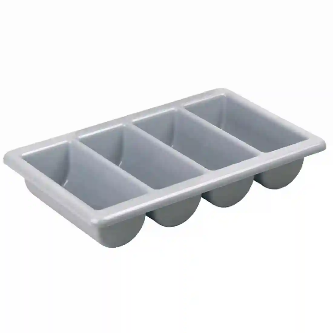1/1 gastronorm sized stackable, strong and easy to clean tray with four large compartments. Easy to clean. Stackable. 100(h)x530(w) x325(d)mm.
