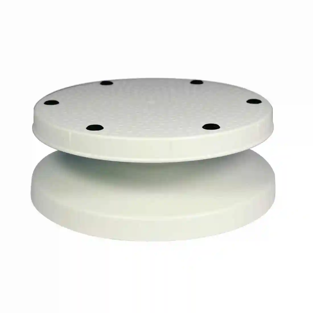 Add stunning decorations to your cakes with ease, thanks to this high quality PME icing turntable. Designed to rotate freely, this turntable allows you to produce a consistent, non-stop flow of icing when decorating, guaranteeing faster performance while also ensuring your patterns are smooth and precise to enhance the presentation of your delicious cakes. Boasting non-slip feet and buttons, this icing turntable also ensures your cakes are always securely fixed into place, preventing any slips or jolts when in operation. Crafted from sturdy polypropylene, the turntable is also strong enough to support large and multi-tiered baked goods, ensuring you can always ice with immense accuracy no matter how big the cake. Also suitable as a display when serving, the turntable’s eight divisional markings allow you to effortlessly produce even portions every time.