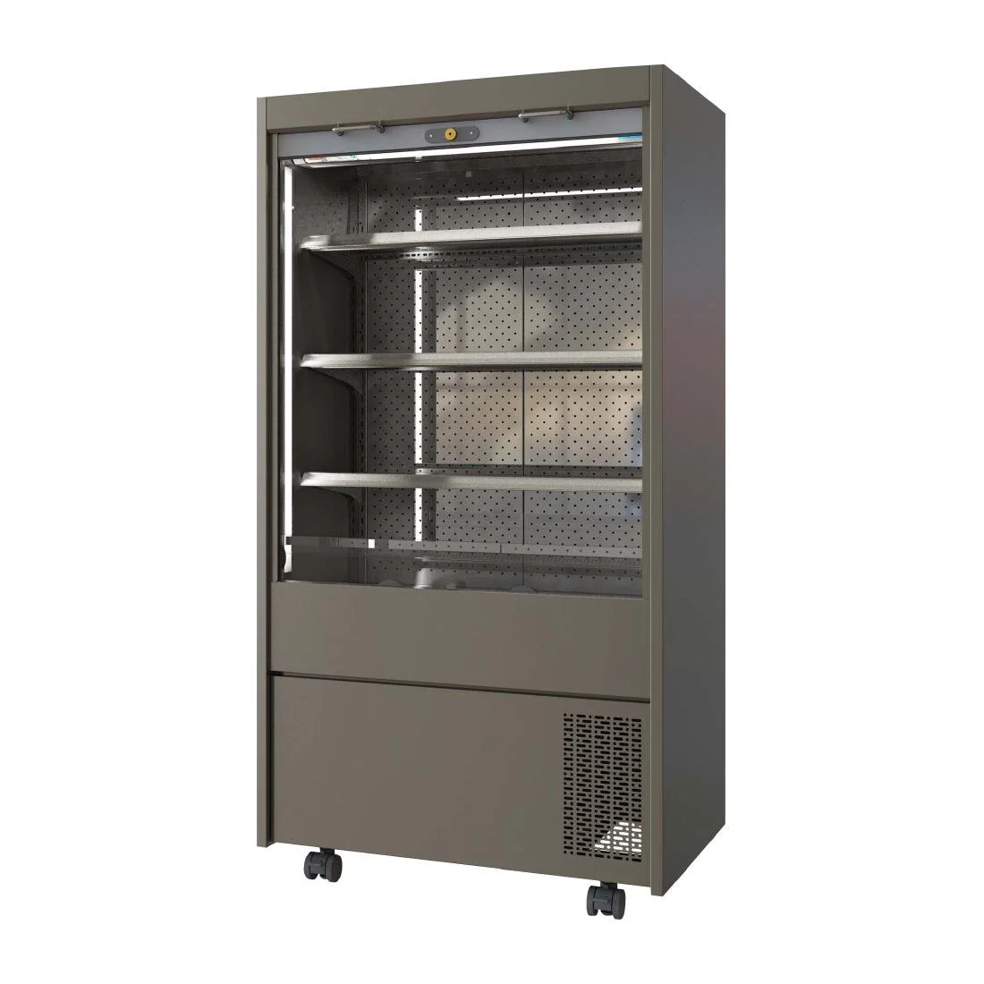 The MM900SRHT Money Maker merchandiser delivers fresh, eye-catching product displays designed to maximise sales in busy retail and hospitality areas. Its three-tier design ensures optimal visibility whilst the lockable shutter provides security and energy efficiency when closed. Built-in castors allow for flexible positioning to suit your layout.