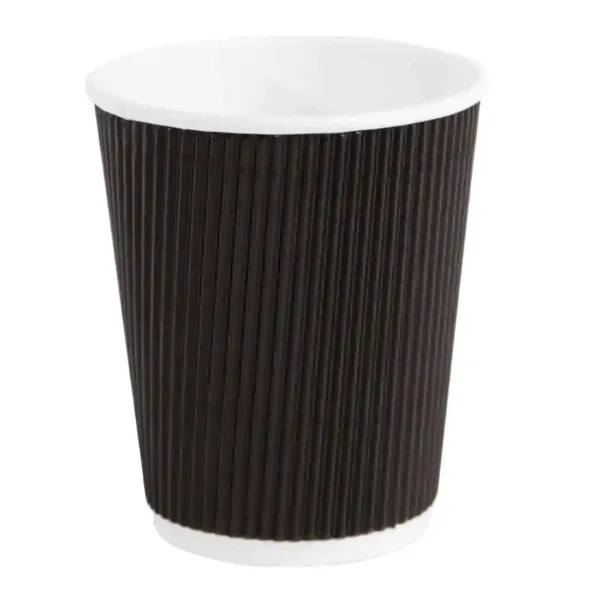 These matt black disposable cups are perfect for serving hot drinks to takeaway. When filled with a hot beverage, the ripples create a layer of insulation that keeps drinks hot for longer and provides a cool surface for you customers to hold. The rim is rolled to create a tight fit with the lids, preventing accidental spills and avoiding burns. Generous, 500 cup pack.