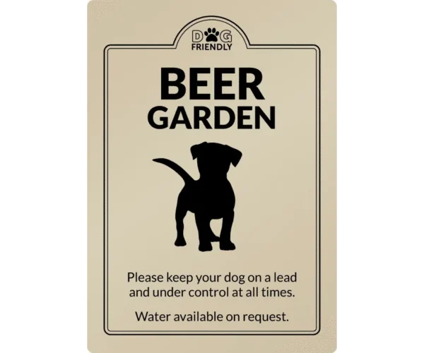 Dog-Friendly Beer Garden. Dog-friendly premises sign.