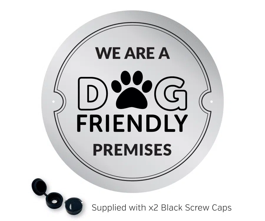 Well-behaved dogs are welcome. Dog-Friendly Premises plaque.