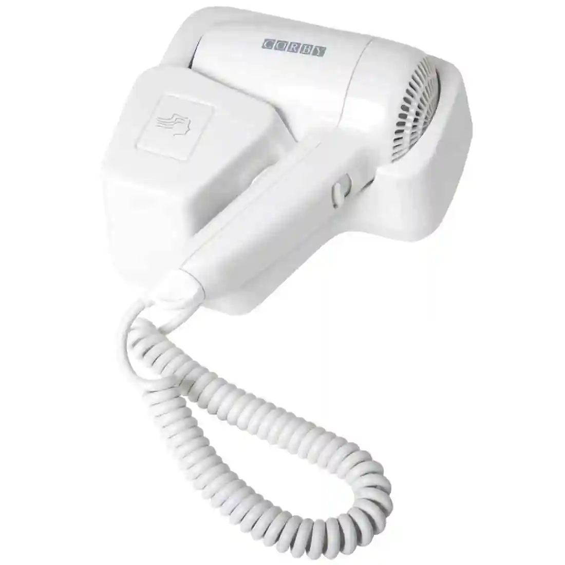 A safe and practical hair dryer which can be mounted on a wall or stored in a drawer to save space. The dryer has two heat settings, an electric shock safeguard and is turned on with a spring loaded power button for ease of use.