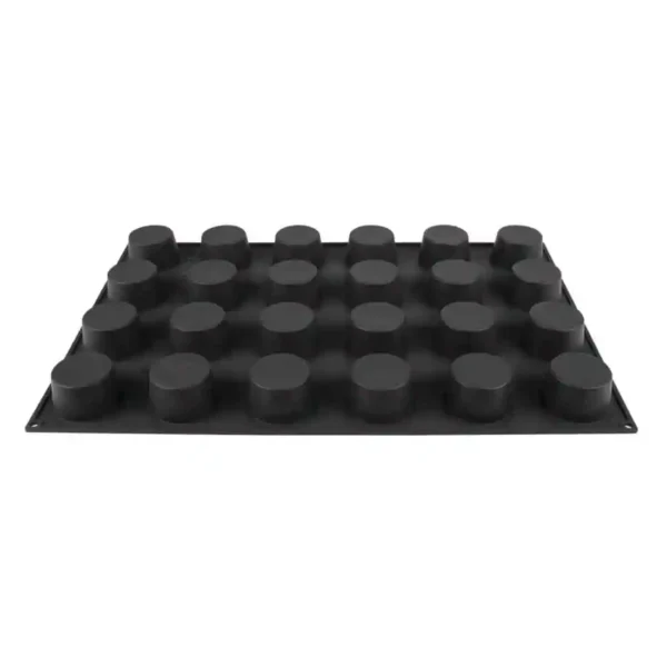 Supple non-stick 24 muffin mould, ideal in pastry shops and restaurants. Made from 100% food quality silicone this flexible mould is an excellent substitute for multi-shaped metal trays allowing patisseries to be simply pushed out.