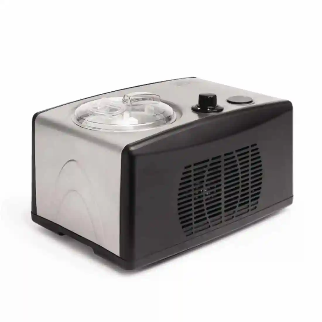 Large capacity machine with built in compressor and LED temperature display. No need to pre- freeze bowls. Perfect for making ice cream, sorbet or frozen yogurt.
