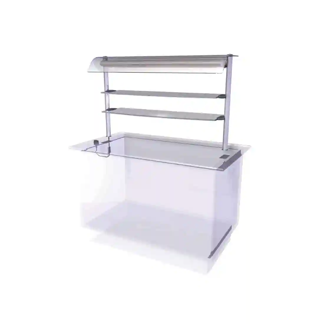 2 Shelves. Capacity: 4x 1/1 GN. Self Service. 1500mm Wide