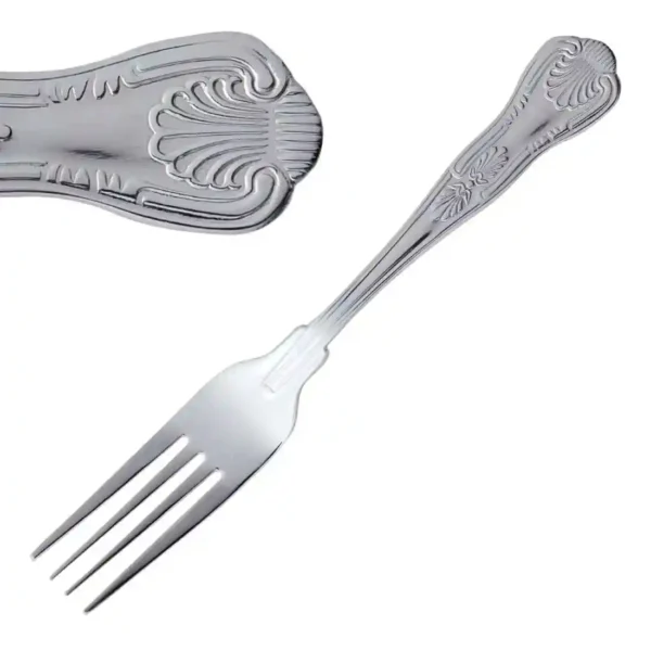 High polish finish 18/0 stainless steel with an elegant regency crest design on the handle