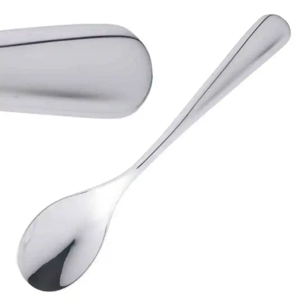 Smooth curves flowing to a scooped teardrop handle give a touch of elegance to any table setting. Durable forged 18/10 high polish finish stainless steel.