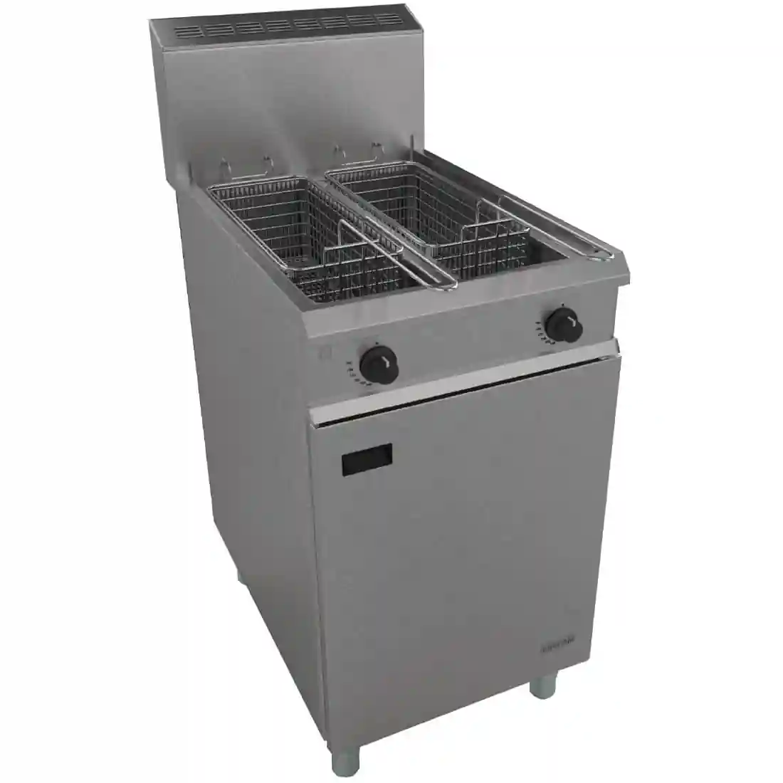 Falcon’s heavy duty, stainless steel Falcon Chieftain G1848X twin tank natural gas fryer is renowned for its impressively high output. This is due to a variety of special features that allow a longer-oil life compared to other models. Some of these include the sediment zone and lift out strainer, which prevents build-up of carbon debris. It also features an integral dust and debris cover to keep the machine clean and an accurate fast response operating thermostat with overriding safety thermostat.