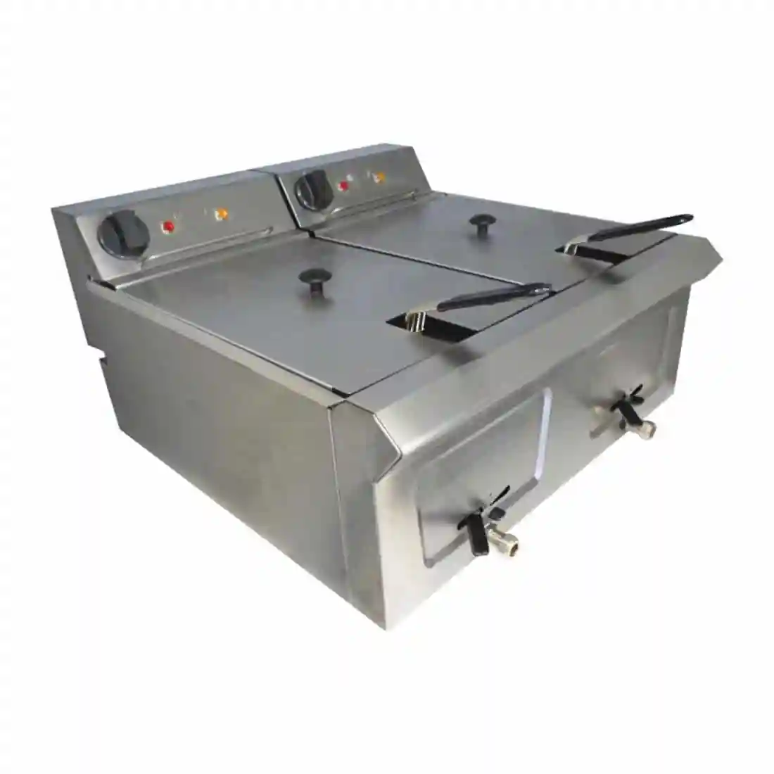 - Supplied with two fryer baskets and two lids