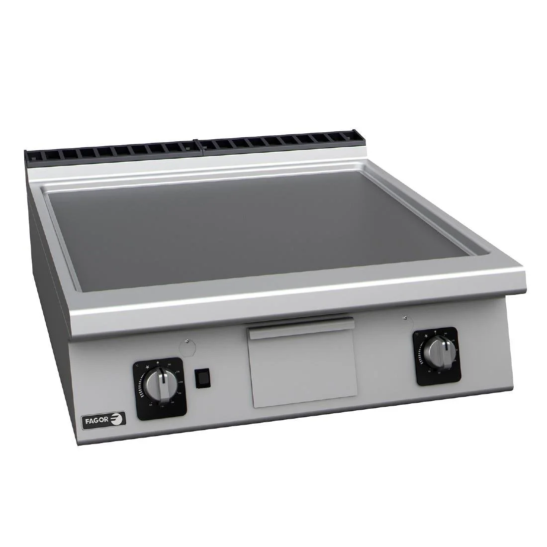 Powerful and reliable, the FT-G910 L Fagor 900 Series countertop smooth plate gas griddle provides the perfect cooking surface for busy professional kitchens. Providing an impressive 18.5kW of power across its 800mm wide, 20mm thick mild steel smooth cooking plate, you get a fast heat-up and rapid recovery times – essential for those busy lunch or dinner hours.