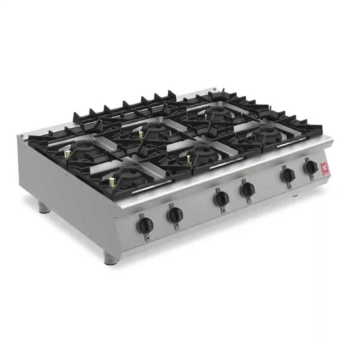 Today’s modern professional kitchen demands the very best in performance and reliability. The natural gas Falcon F900 G90126 Countertop Six Burner Boiling Hob does just that, thanks to immensely powerful 9.5kW burners and strong, robust stainless steel construction. Solid cast iron pot supports ensure even large pots and pans can be accommodated, meaning the hob is perfect for high output kitchens in restaurants, canteens, schools, takeaways and more. Designed to suite perfectly with other Falcon F900 countertop appliances.